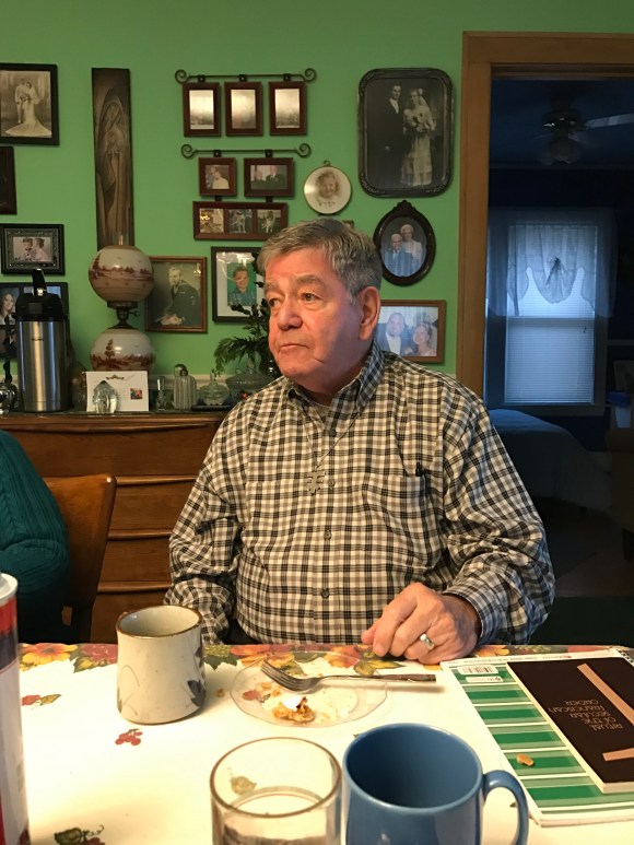 Here are some members of our fraternity (from left to right): Sister Dorothy Pagosa, our Spiritual Assistant; Diane, who makes awesome lunch awesome; Susan, our soon to be professed candidate; and Barb, who is digging into that pumpkin pie like there is no tomorrow.