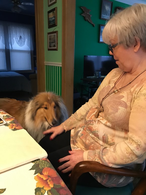 Wellspring’s guard dog, Keltie, is inspecting our Regional Minister’s hand. We thoroughly enjoyed having Lorna Miressi visiting us.